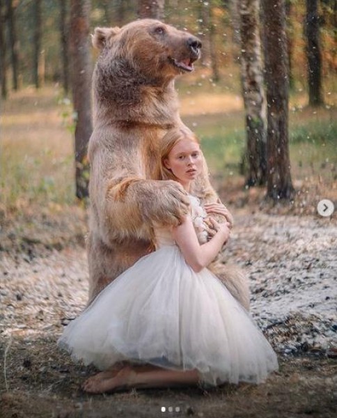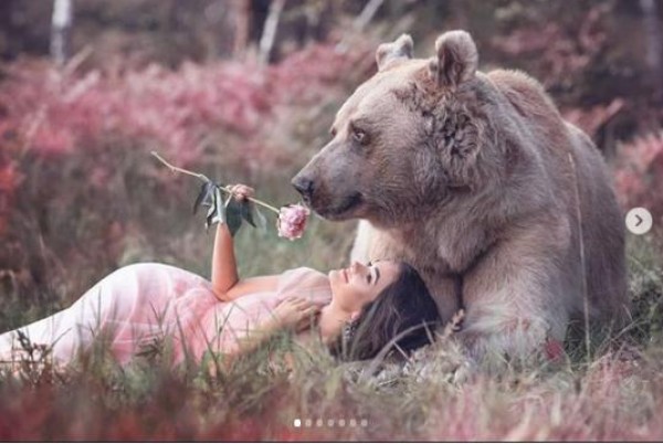 يحظى الدب "ستيبان" الروسي بشهرة كبيرة لقدرته على الوقوف بجانب النساء الجميلات وإضفاء سحر خاص على جلسات التصوير.