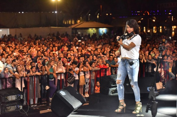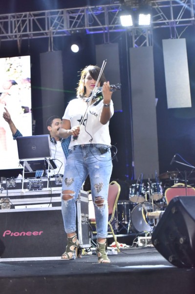 بدء الخفل بفقرة مميزة لعازفة الكمان هالة كمال خطفت انظار الجمهور حيث صاحبها استعراضات علي أشهر ما قدمته من مقطوعات موسيقية شرقية وغربية.
