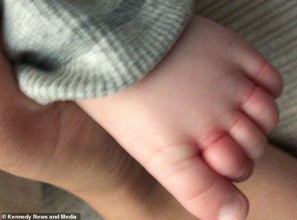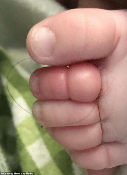 ووفقا لصحيفة "ديلي ميل" البريطانية، فإن "أليكس" استخدمت ملقطا لإزالة شعرها الملتف حول قدم صغيرها بعدما انتفخت بشدة، وأصبح لونها شديد الحمرة طوال ساعات الليل.