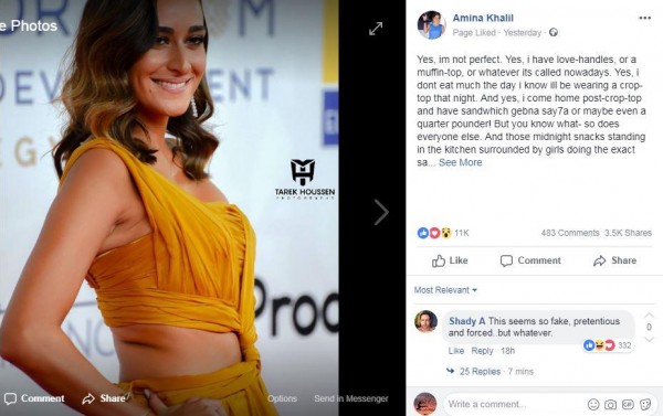 وقالت عبر حسابها على موقع التواصل الاجتماعي "فسيبوك": "نعم لست مثالية، ولدي أجناب تدعونها مقابض الحب، لا أعلم ما تطلقون عليها الآن".