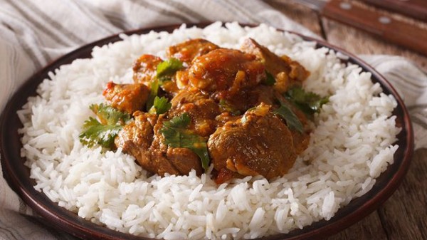 17- ضعي الارز في طبق التقديم بعد أن يكون قد نضج تماماً ثم ضيفي قطع الدجاج على وجه الطبق.