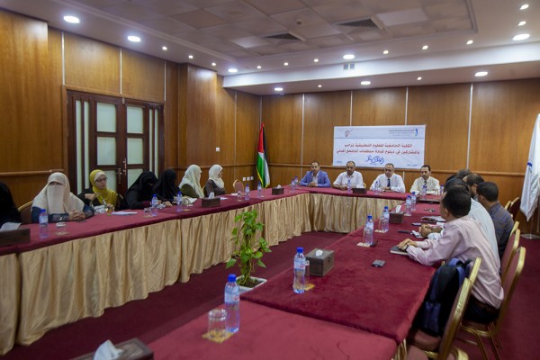 استضافت الكلية الجامعية للعلوم التطبيقية المشاركين في دبلوم قيادة منظمات المجتمع المدني الذي ينظمه مركز إعداد القادة في مؤسسة إبداع للأبحاث والدراسات والتدريب، وذلك بهدف اطلاعهم على تجربة الكلية الجامعية في عدد من المجالات، حيث انطلق اللقاء بحضور ومشاركة كل من الأستاذ الدكتور رفعت رستم رئيس الكلية، المهندس نبيل إسليم مدير مؤسسة إبداع للأبحاث والدراسات والتدريب، الدكتور أكرم رضوان مساعد النائب الأكاديمي في برامج الدبلوم المتوسط، إضافة إلى رؤساء مجلس إدارة ومدراء مجموعة من المؤسسات الأهلية والمجتمعية في قطاع غزة.