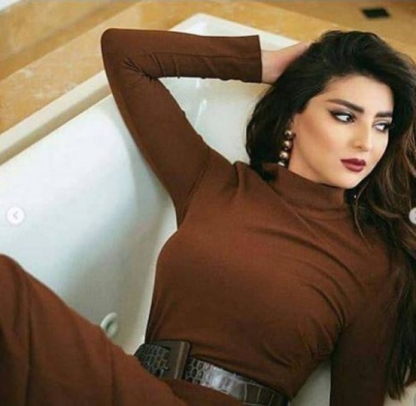 وايضاً لفتت الاعلامية مريم سعيد الانظار وهي مستلقية داخل البانيو بفستان بني طويل وضيق مع حزام من اللون البني المحروق.