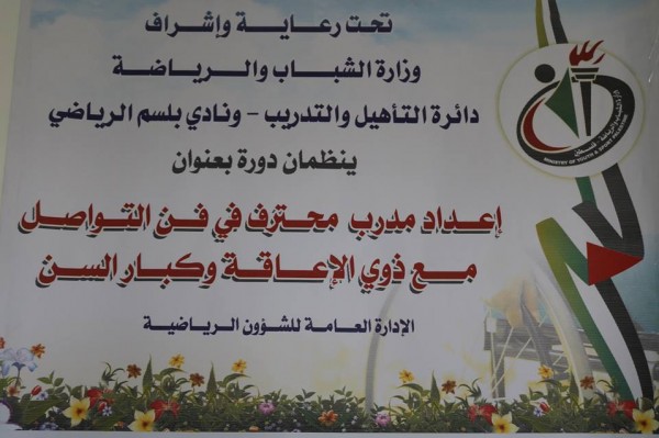 عقدت دائرة التدريب والتأهيل بنادي بلسم الرياضي دورة تدريبية بعنوان" إعداد مدرب محترف في فن التعامل مع ذوى الاعاقة وكبار السن، حيث استهدفت طلاب وطالبات تربية رياضية -كلية الاقصى بقاعة وزارة الشباب والرياضة بحضور كل من منال المدهون رئيسة النادى, وأ. محمد أبو دوابة.
