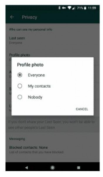 يفضل البعض عرض صورهم الشخصية على حساباتهم لكن قد تصل هذه الصورة إلى جهات أخرى غير جهات الاتصال المسجلين على الهاتف. تخصيص الإعدادات بإخفاء الصورة تماما أو عرضها على جهات الاتصال فقط يمنح مزيدا من الخصوصية.