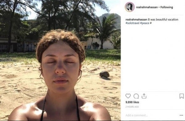 رحمة حسن، نشرت الجزء الأول من الصورة فقط، والتي ظهرت فيها بأكتاف عارية، وقامت بحجب التعليقات على الصورة حتى تتجنب الانتقادات من قبل متابعيها.
