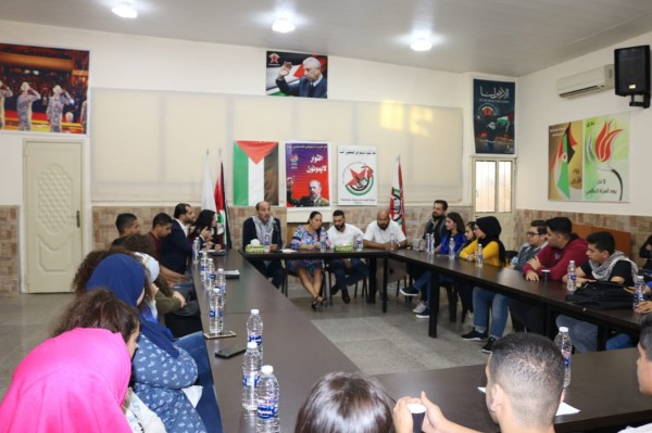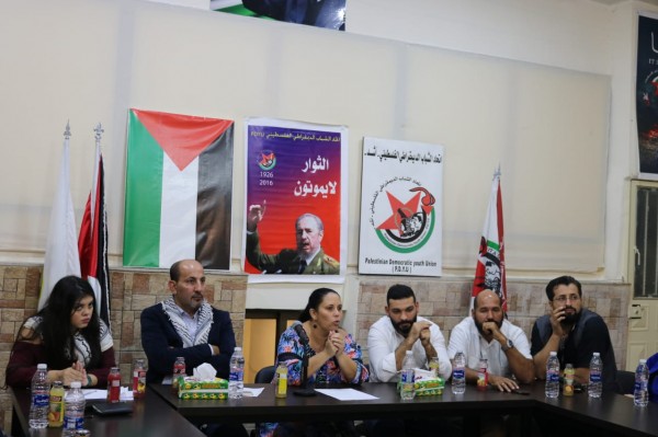 وختم أحمد، تأكيده بأن الشباب والشعب الفلسطيني يواصل اليوم ثورته ونضاله بوجه الاحتلال الإسرائيلي، وبوجه الولايات المتحدة الأمريكية رأس الامبريالية في هذا العالم، والتي تمارس اليوم سياسة العدوان تجاه شعبنا الفلسطيني من خلال دعمها للاحتلال الإسرائيلي وضغوطها لتمرير وفرض مشروع ما يسمى " صفقة القرن" التي تستهدف تصفية القضية والحقوق الوطنية الفلسطينية.