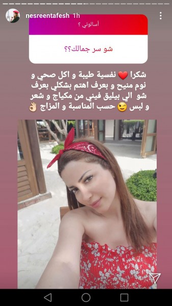 ردت الفنانة نسرين طافش على أسئلة بعض متابعيها في إنستغرام، عبر خاصية الستوري.