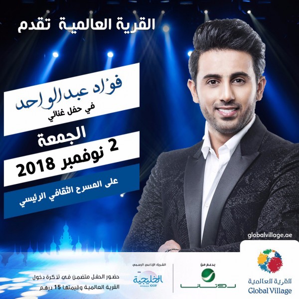 مسؤولية كبيرة ألقيت على عاتق الفنان الشاب فؤاد عبد الواحد، بعدما تم إختياره من قبل إدارة القرية العالمية في مدينة دبي بدولة الإمارات العربية المتحدة، لإفتتاح أولى الحفلات الغنائية في مهرجان القرية العالمية للموسم 2018/2019، وذلك في يوم الجمعة الموافق 2 نوفمبر 2018، وهي مسؤولية هامه أكد فؤاد سعادته بها، وأنه سيكون عند حسن ظن الجميع به، وسيقدم سهرة غنائية متميزة أمام جمهور القرية برفقة فرقته الموسيقية، وذلك على المسرح الرئيسي، ومن تنظيم القرية العالمية بالتعاون مع شركة روتانا.
