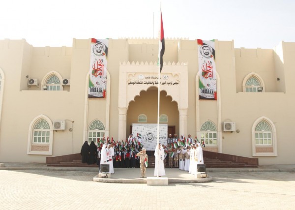 وقم المحيان والحضور برفع العلم وقدم التهاني لقيادة وشعب الامارات على هذه المناسبة الوطنية الخالدة مشيرا إلى ما تعكسه من رمزية غالية في حب تراب الوطن والذود عنه