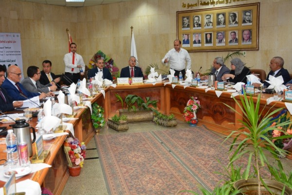 وقد أشار محافظ أسيوط فى مستهل الجلسة أن التعاون المتبادل أثمر فى الفترة القليلة الماضية على مشاركة الجامعة فى مشروع تجميل الميادين الرئيسية فى المحافظة ووضع عدد من الحلول العلمية والعملية لدفع عجلة الحركة العمرانية والسكانية فى منطقة أسيوط الجديدة وكذلك فيما تم الوصول إليه فى استغلال المخلفات الناجمة من قش الذرة وتحويلها إلى سماد عضوي وأعلاف والعمل على استغلالها فى مجال الصناعات الخشبية وخاصة بعد وصول المفارم وتحديد أماكن تجمع تلك المخلفات ومنع المزارعين من حرق قش الذرة والذي كان له تأثير بيئي خطير على صحة المواطنين .