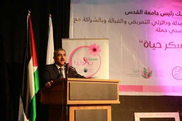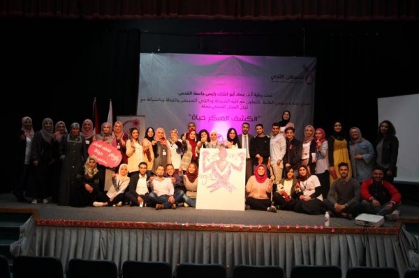 افتتحت في جامعة القدس فعالية حملة " الكشف المبكر حياه " بالتعاون مع كلية الصيدلة ودائرتي التمريض والقبالة والتي جائت تزامناً مع المبادرة العالمية للتوعية بمرض سرطان الثدي والتي تقام في شهر إكتوبر من كل عام.