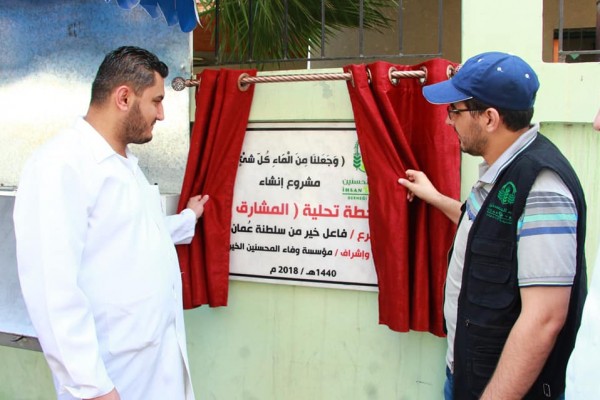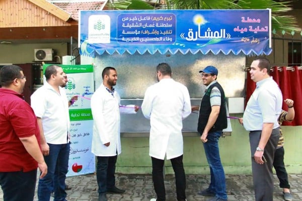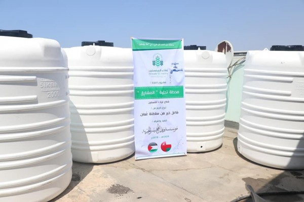 افتتحت مؤسسة وفاء المحسنين الخيرية خلال الأسبوع الماضي محطة " المشارق " لتحلية وتنقيه مياه الشرب شرق مدينة غزة ، بتبرع من فاعلي خير من سلطنة عُمان الشقيقة .