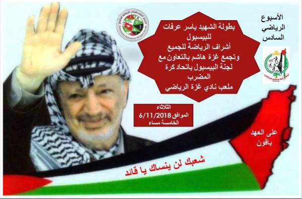 وقال أسامة فلفل أن هذه البطولة تأتي ضمن مناشط الأسبوع الرياضي الذي ينظمه الاتحاد الوطني الفلسطيني للرياضة للجميع والألعاب الشعبية وتجمع غزة هاشم الرياضي بالتعاون مع لجنة البيسبول باتحاد كرة المضرب تخليدا لذكرى فارس ورمز الثورة الفلسطينية الشهيد ياسر عرفات.