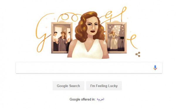 نشرت الصفحة الرئيسية لموقع "جوجل" الشهير، منذ صباح اليوم صورة الفنانة "هند رستم" في محرك البحث في جميع الدول العربية إحتفالاً بعيد مولدها الذي كان في (12 نوفمبر 1931).