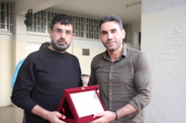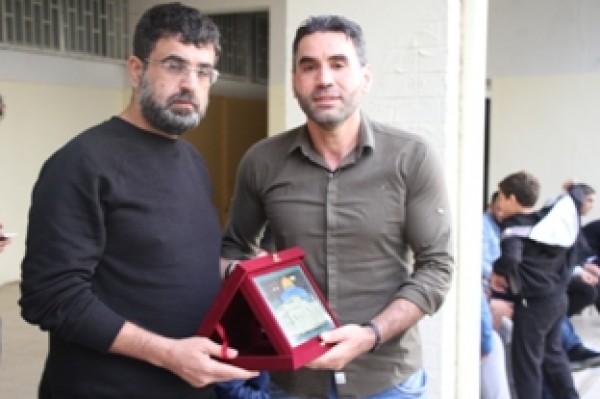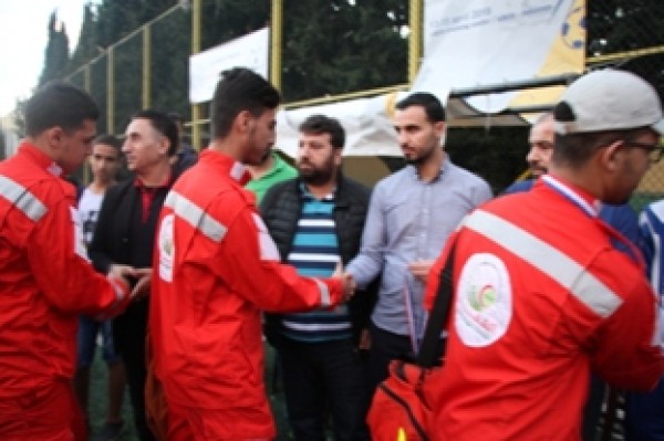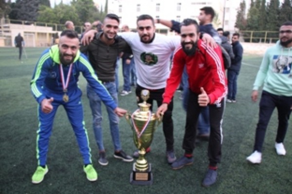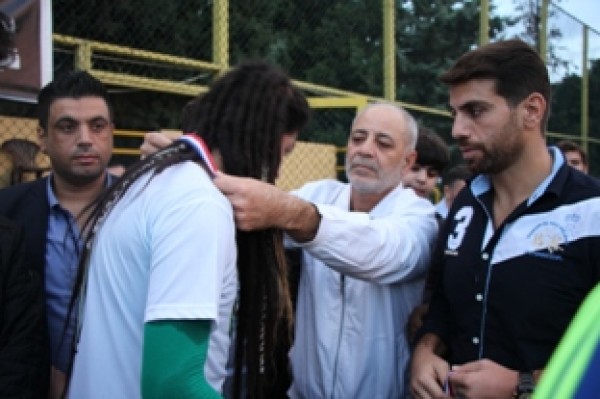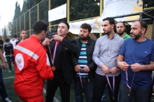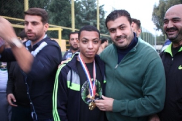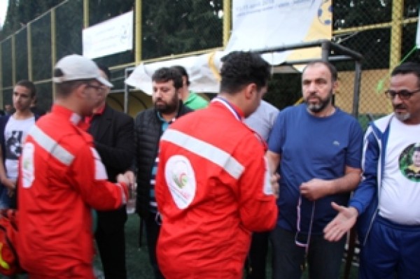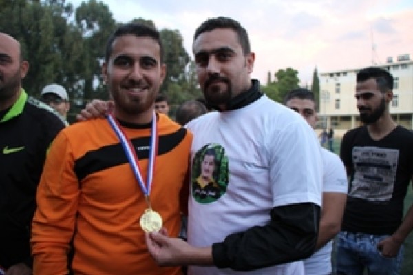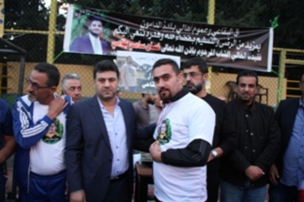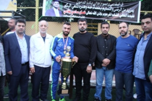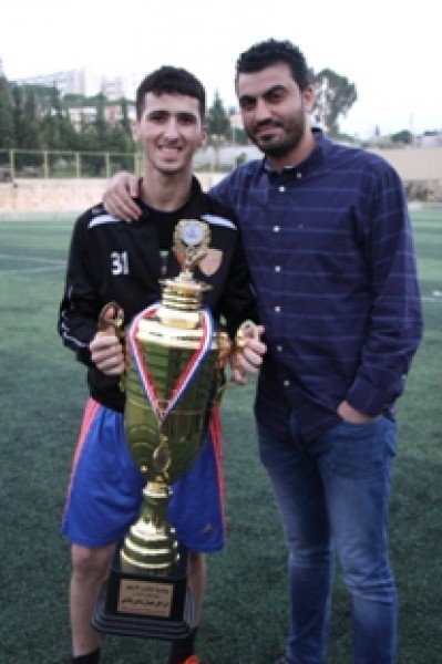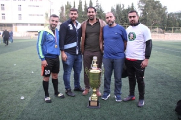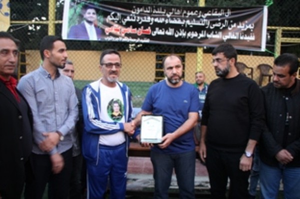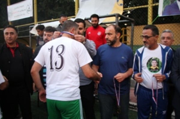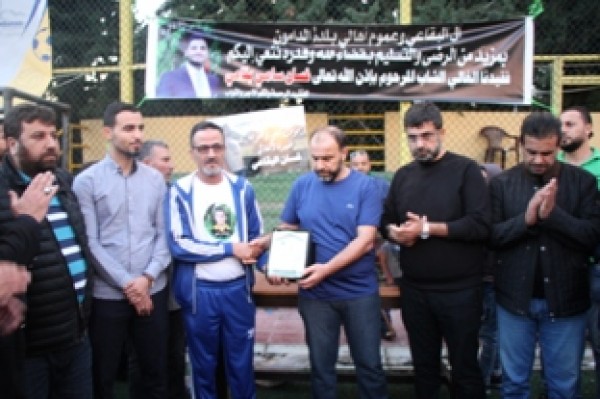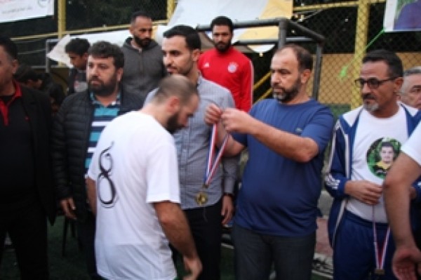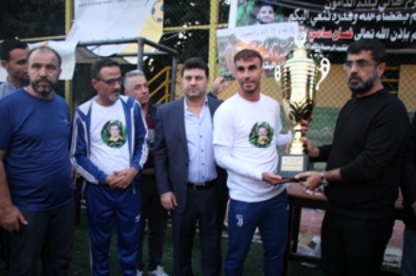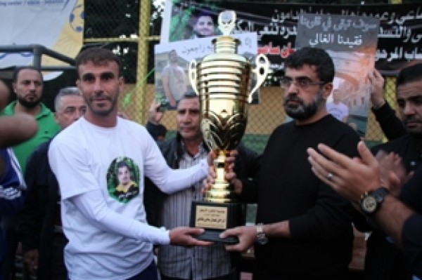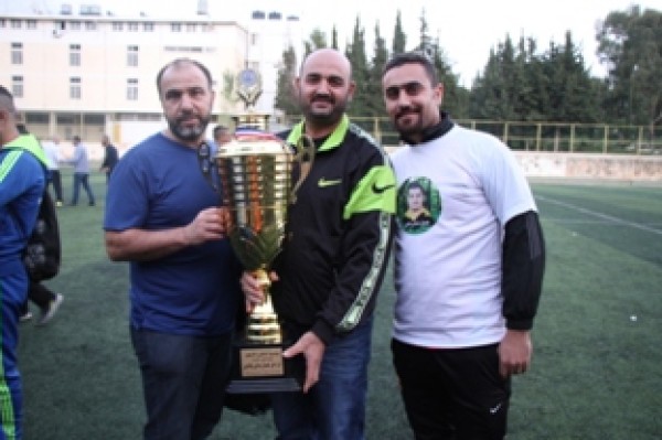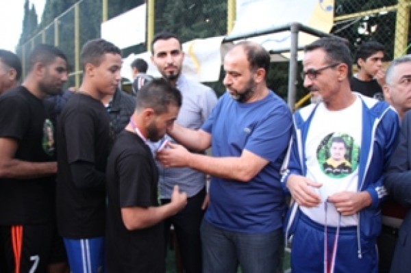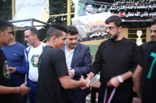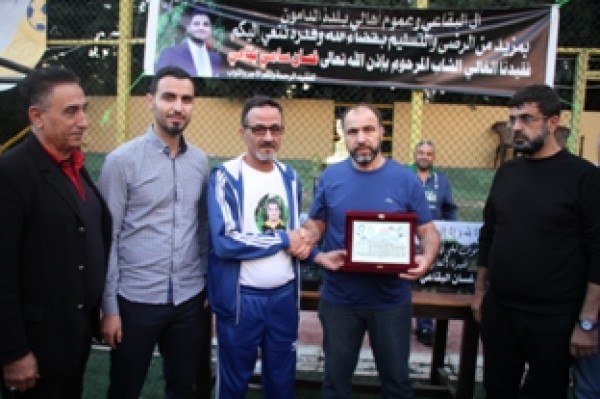 وفي نهاية المباراة تسلم المستشار في سفارة دولة فلسطين سامي البقاعي الكأس من الفريقين تكريماً لروح الفقيد .