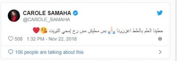 كارول سماحة تصحح خطأ فادحاً بآخر.. وتتعرض للإنتقاد والسخرية