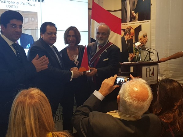 شهد الحفل شخصيات ايطالية و دبلوماسية بارزة، كما حضرة السفير هشام بدر سفير مصر بروما، والسفيرة بيه عبدالباقى قنصل عام تونس بروما، والدكتور عبدالحق عزوزي الامين العام لمنظمة البحر المتوسط، وسلمه الجائزة ميشيل كاباسو رئيس المنظمة، وكان بين الحضور أيضا، طارق أبو العينين نائب رئيس مجلس إدارة كليوباترا جروب.