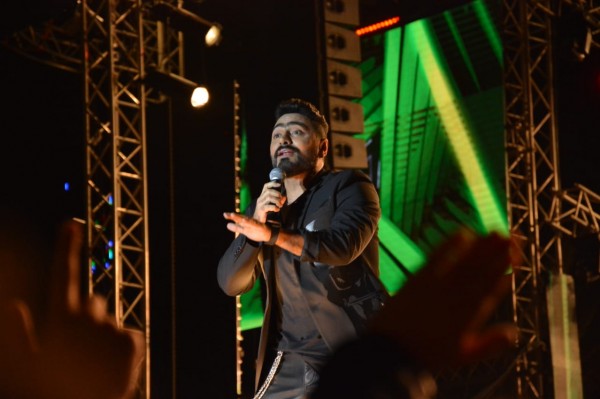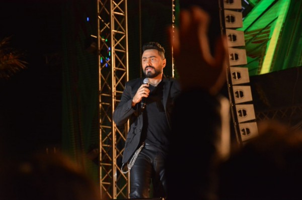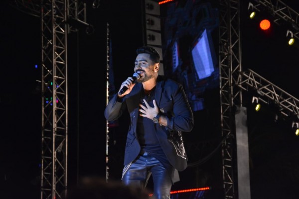 أحيا تامر حسني أولى فقرات الحفل المقام داخل الجامعة البريطانية بحضور الألاف من مختلف الأعمار.