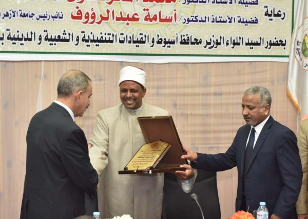 وفى نهاية الاحتفالية تم تكريم محافظ أسيوط ومنحه درع الجامعة تقديرا لجهوده فى عمليات البناء والتنمية بالمحافظة ودعم جهود وانشطة جامعة الازهر كما تم منح دروع الجامعة لقائد المنطقة الجنوبية العسكرية ووكيل المنطقة الازهرية ولمدير منطقة الوعظ والارشاد .