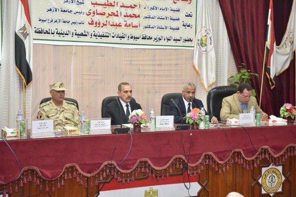 بحضور الدكتور أسامة عبد الرؤوف نائب رئيس جامعة الازهر لفرع أسيوط والعميد صلاح عبد اللطيف نائبا عن قائد المنطقة الجنوبية العسكرية والدكتور صلاح مناع عميد كلية اللغة العربية والدكتور محمد عبد المالك عميد كلية اصول الدين والدكتور خلف على عمار مدير عام منطقة الوعظ والارشاد بأسيوط والشيخ على عبد الحافظ وكيل وزارة المنطقة الازهرية بأسيوط والدكتور أحمد عباس أمين عام الجامعة ولفيف من عمداء الكليات وأساتذة وطلاب الجامعة .