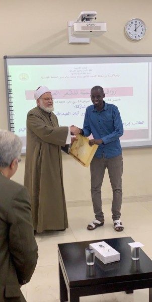 وفي نهاية الجلسة الشعريّة كرَّم مدير الجامعة كليّة الآداب والمشاركين مؤكّدا توجّه الجامعة إلى تخصيص قاعة للأنشطة اللامنهجيّة في الجامعة، تكون رواقا جميلا يجمع الطلاب بأنشطتهم الإيجابيّة البنّاءة الرائدة بإشراف أساتذتهم ودعم الجامعة لهم.
