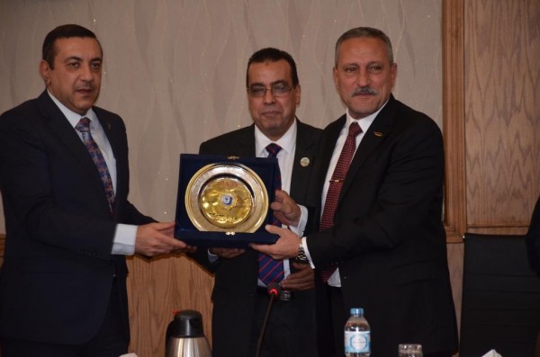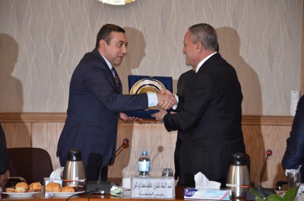 وفى ختام الاجتماع تم اهداء درع كلية الصيدلة لمحافظ الاسماعيلية .