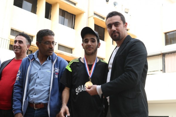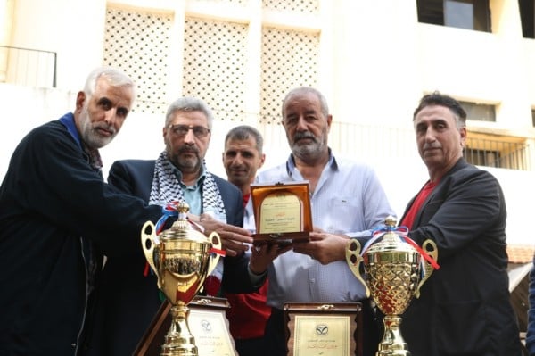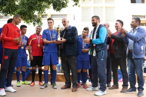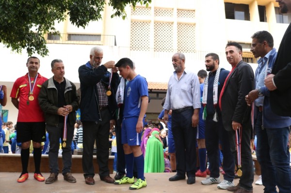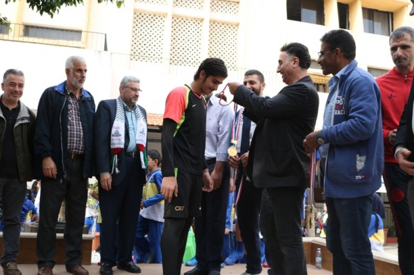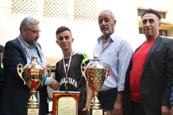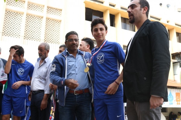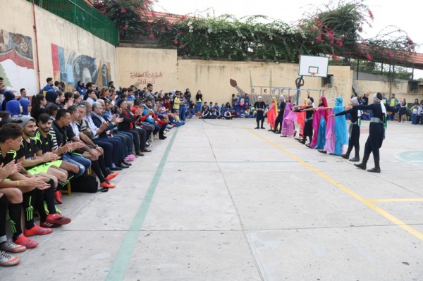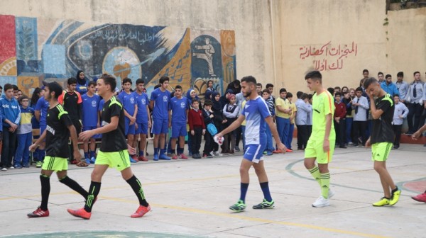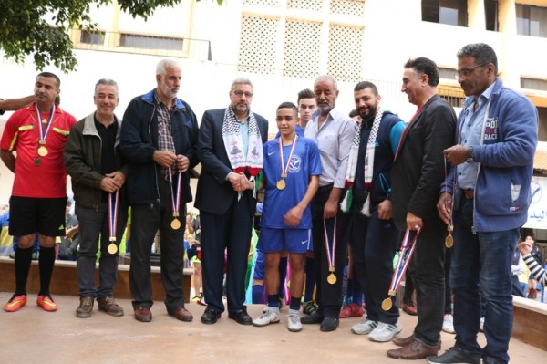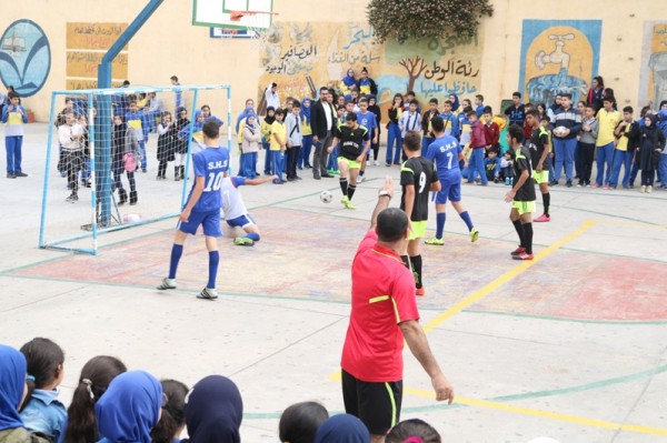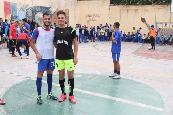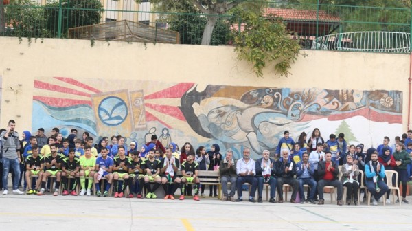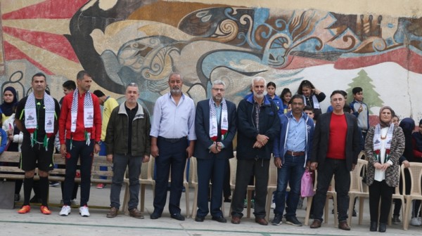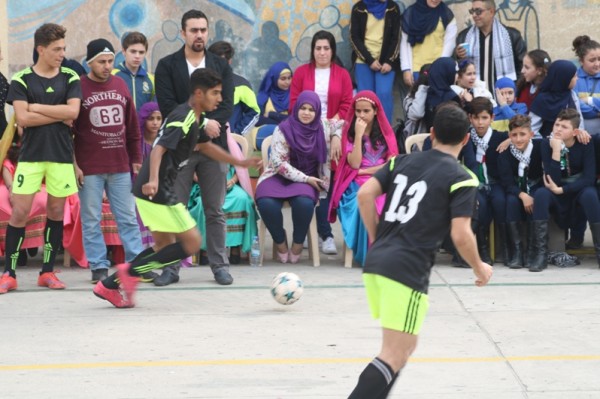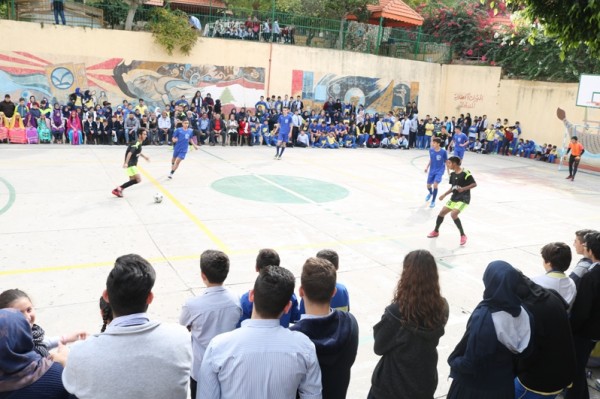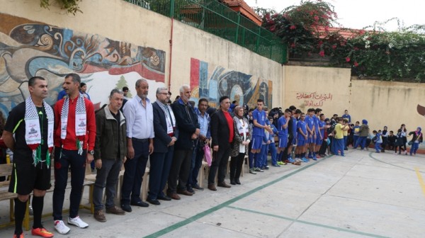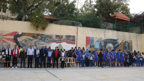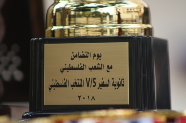 ثم كانت المباراة التضامنية بين تجمع الاندية الفلسطينية ومنتخب ثانوية السفير بحضور الطلاب والهيئة التعليمية للمدرسة ووفد الاتحاد الفلسطيني برئاسة الامين العام السيد احمد حداد ورئيس لجنة الصالات الاستاذ خليل العلي ونائبه الاستاذ اسامة شبلي وامين السر السيد اديب عناني ومسؤول شؤون الجرى والشهداء الاستاذ احمد حسين ابوخالدو ممثلي الاندية الفلسطينية اياد فرهود ومصطفى حسين والوفد الاعلامي فادي عناني وسعيد محمود وانتهت بنتيجة 6-1 لتجمع الاندية الفلسطينية .