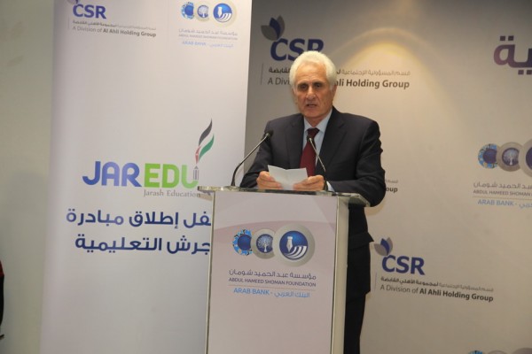 أقيم حفل إطلاق مبادرة جرش التعليمية في مؤسسة عبد الحميد شومان، بتنظيم قسم المسؤولية المجتمعية التابع لمجموعة الأهلي القابضة، مؤخرا، تحت رعاية رئيس لجنة التربية والتعليم في مجلس الأعيان، الدكتور وجيه عويس.