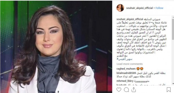 وأضافت سهير القيسي قائلة: "شو اختلف اعتقد الآن الوجه انحف شكل الوجه الدائري كالتفاحة في العراق مألوف وليس بالغريب…بالنهاية ركزوا دائما على فحوى المنشورات وكونوا أعمق من التوافه مع التقدير".