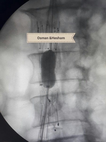 وحول خطوات الجراحة أضاف الدكتور عثمان انه فور إجراء أشعه الدوبلكس للمريض على للشريان الحرقفى الأيسر والشريان الأورطى تبين وجود تمدد ووجود قرحه نشطة بالشريان مع تصلبات شديدة غير مستقرة وانسداد بالدعامة السابقة وكذلك تم إجراء أشعه مقطعية على الشريان الأورطى والطرفين بالصبغة والتي أكدت نفس النتائج ، فكان القرار استخدام دعامات مغطاة للشريان الأورطى والشريان الحرقفى الأيمن وذلك نظراً لأن الوضع الصحي للمريض لا يسمح بإجراء تدخلات جراحية للشريان الأورطى ، ثم تم عمل زرع شريان من الطرف الأيمن للطرف الأيسر لصعوبة شق الدعامة السابقة لاختلاف كبير فى المقاسات التي تم تركيبها للمريض فى وقت سابق .