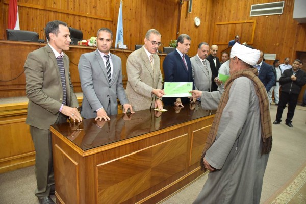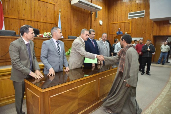حيث بدأ اللقاء الجماهيري بتكريم أسرة الراحل عبد الحكيم عبد الحليم شحاته مدير إدارة الأمن السابق الذي وافته المنية خلال عمله بلقاء المواطنين الماضي ووقف الجميع دقيقة حداد وتم قراءه الفاتحة على روحه وعلى أرواح شهدائنا الابرار ومنح المحافظ أسرته شهادة تقدير ووسام من المحافظة تكريمًا له وتخليدًا لذكراه.