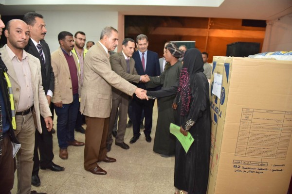 كما وزع المحافظ المساعدات المقدمة من مؤسسة مصر الخير لعدد 8 أسر مضارة من الأمطار بعزبة سعيد التابعة لقرية المعابدة بأبنوب حيث تم توزيع فرش منزلي وأجهزة كهربائية (ثلاجات – غسالات – بوتاجاز وغيرها) حيث توجه المحافظ برفقه الأسر المضارة إلى الساحة الأمامية لديوان عام المحافظة لتسليمهم المساعدات بنفسه.