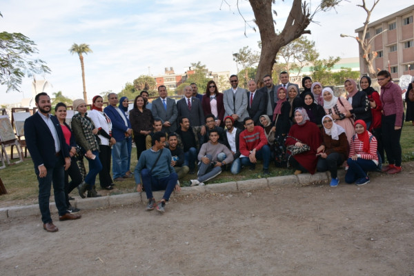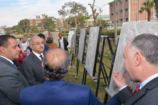 وصرح الدكتور محمد ثابت أن الحفل تضمن تكريم رئيس الجامعة ونائبه للطلاب الفائزين فى المسابقة الإبداعية والتى شملت ثلاث مجالات هى التصوير الجدارى، والنحت الميدانى، والنحت البارز.