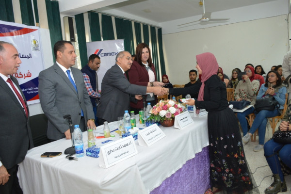 جاء ذلك بحضور الدكتور شحاتة غريب شلقامى نائب رئيس الجامعة لشئون التعليم والطلاب، والدكتور محمد ثابت بدارى عميد الكلية، والدكتورة سحر بطرس وكيل الكلية لشئون خدمة المجتمع، والدكتور محمد عبد الحكيم وكيل الكلية لشئون التعليم والطلاب، ووفد ممثل من شركة سيمكس يضم الأستاذة زينب حجازى رئيس قطاع العلاقات العامة، والأستاذ إبراهيم السيد منسق العلاقات العاامة، والدكتور محمد نبيل مدير التسويق إلى جانب عدداً من أعضاء هيئة التدريس والطلاب بالكلية.