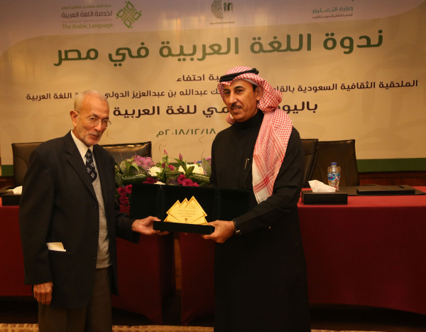 نظمت الملحقية الثقافية بسفارة خادم الحرمين الشريفين بالقاهرة بالشراكة مع مركز الملك عبد العزيز الدولي للغة العربية يوم الثلاثاء 18 /12/2018بفندق سفير الدقي ندوة تحت عنوان " اللغة العربية في مصر "، وذلك تزامنا مع الاحتفاء باليوم العالمي لخدمة اللغة العربية ، والذي يصادف تاريخ الثامن عشر من شهر ديسمبر من كل عام ميلادي لاعتماد اللغة العربية كواحدة من اللغات الست ولغات العمل بالأمم المتحدة .