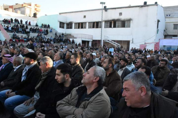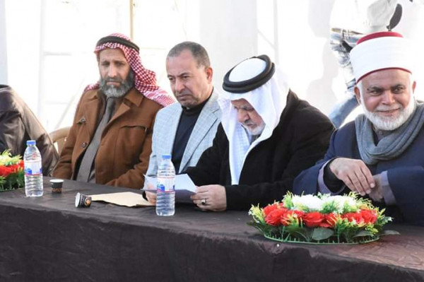 وبدأت مراسم الصلح بآيات من الذكر الحكيم تلاها د. ابراهيم ابو جلمبو ومن ثم النشيد الوطني ورحب الشيخ جمال مغاري بالحضور قائلا: إن ما حصل في وفاة الفتاة مرح كان قضاء الله وقدره موضحا اننا اليوم في عقد صلح وعفو وصفح بين عائلتين
