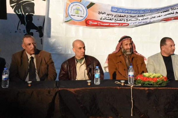 وحضر مراسم الصلح أعضاء من رابطة علماء فلسطين ولجنة إصلاح المخيم والمخاتير وممثلو القوى الوطنية والاسلامية والأكاديميين وحشد كبير من الجمهور وذلك في مركز خدمات المغازي.