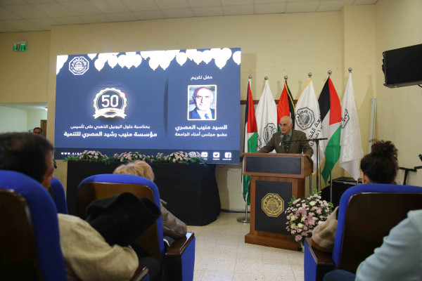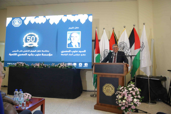 جاء ذلك خلال حفل مهيب نظمته جامعة القدس احتفاءً بحلول اليوبيل الذهبي على تأسيس مؤسسة منيب رشيد المصري للتنمية، بحضور زوجته السيدة انجيلا المصري، وابنائه وبناته واحفاده، وجمع غفير من إداريي وأكاديميي وطلبة الجامعة.