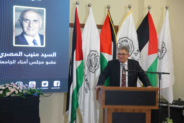 ووجّه السيد المصري في كلمته شكره لأسرة جامعة القدس ممثلة ًبرئيسها أ.د. عماد أبو كشك على حفاوة الاستقبال والتكريم له ولعائلته قائلاً: "إنه لشرف عظيم أن أكون اليوم في جامعة القدس برفقة أسرتي، هذه الجامعة العريقة التي ينبت حبها في قلوبنا جميعاً".