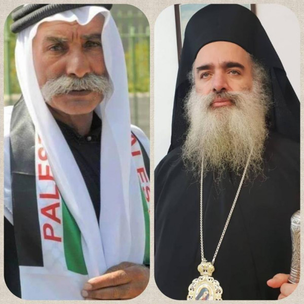 وقال المطران بأننا نوجه التحية لهذا الشيخ المناضل والمكافح والمتشبث بأرضه وهويته ودفاعه عن بلده .