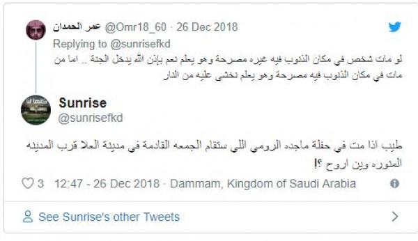 وعبر سعوديون عن رفضهم إقامة هذه الحفلات بمحافظة المدينة المنورة، التي تضم قبر النبي الكريم صلى الله عليه وسلم، موجهين سهام النقد الشديد لهيئة الترفيه على عديد الحفلات التي قالوا بأنها لا تتواءم "وبلاد الحرمين ومدينة الرسول الكريم".