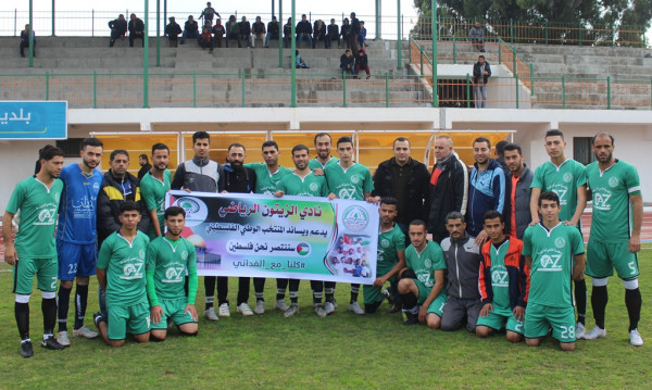 ورفع فريق الزيتون قبل انطلاق مباراته أمام فريق نادي التفاح, لافته حملت صورة للمنتخب الوطني وشعارات تدعم وتساند وتؤازر المنتخب في مهمته الوطنية المقبلة بكأس أمم أسيا 2019 بالإمارات, وخاصة شعار المنتخب الذي تم اعتماده من اللجنة المنظمة بعنوان #سننتصر_نحن_فلسطين .
