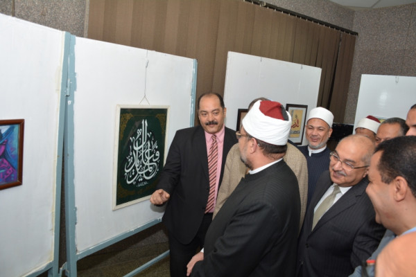 قام الدكتور محمد مختار جمعة وزير الأوقاف، بتفقد معرض " الحرف العربي " والذي نظمته كليتي التربية النوعية والفنون الجميلة بالجامعة.