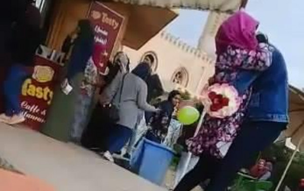 تداول عدد من رواد موقع التواصل الاجتماعي فيسبوك، مقطع فيديو يظهر طالبًا يحضن زميلته في جامعة المنصورة، بعد أن قدّم لها باقة ورد أمام زملائهما بجوار كلية الآداب.