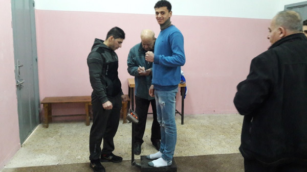 وقبل الاجتماع قام عضوا الاتحاد أ. فايز أبو دية, وأ. جمال الفار بالإشراف على ميزان اللاعبين للتأكد من الأوزان التي سيشاركون فيها خلال اللقاء الودي مع المنتخب الأردني.