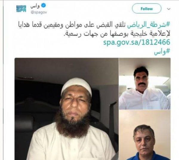 وأسفرت الجهود الأمنية عن القبض على من يقف خلف هذه العملية، وهم: عبدالله صالح حماد المطيري، سعودي الجنسية، ونظير نبيه هاني، لبناني الجنسية، ومتين أحمد، هندي الجنسية".