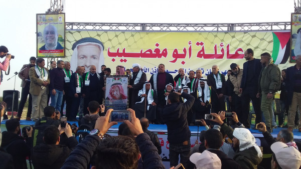 تحت رعاية الدكتور احمد ابو هولي عضو اللجنة التنفيذية رئيس دائرة شئون اللاجئين نظم مهرجانا حاشدا لتأبين رجل الإصلاح وفقيد الوطن المرحوم مرازيق قاعود ابو مغصيب "ابو كمال "بحضور محافظي غزة ومسؤول قوى الامن اللواء توفيق أبو نعيم ورؤساء وأعضاء الاقاليم لحركة فتح ورؤساء وأعضاء اللجان الشعبية وحشد من المخاتير ورجال الإصلاح ومحبي الفقيد وذلك على أرض مدينة حمد في خانيونس، وافنتح المهرجان بأيات من الذكر الحكيم والسلام الوطني الفلسطيني.