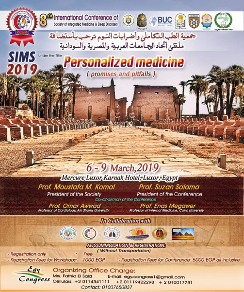 أعلن الدكتور مصطفى كمال رئيس جامعة أسيوط الأسبق ورئيس جامعة بدر الحالي ورئيس جمعية الطب التكاملي واضطرابات النوم بجامعة أسيوط عن إطلاق الجمعية لمؤتمرها الثامن فى مارس المقبل فى الفترة من 6 إلى 9 مارس 2019 وذلك تحت عنوان "تفعيل سبل العلاج لكل مريض".