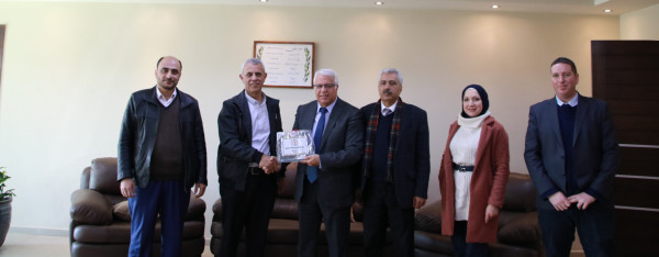 استقبل رئيس جامعة بوليتكنك فلسطين الأستاذ الدكتور عماد الخطيب رئيس كلية القاسمي للهندسة والعلوم الدكتور مدحت عثمان، ومدير مكتبه السيدة انشراح مرزوق، بحضور نائب رئيس الجامعة للشؤون الأكاديمية الدكتور مصطفى أبو الصفا، وعميد القبول والتسجيل الدكتور محمد الدشت، ومدير دائرة العلاقات العامة الأستاذ عبد الناصر دعنا، ومساعدة نائب الرئيس لخدمة المجتمع الأستاذة ملاك النتشة.